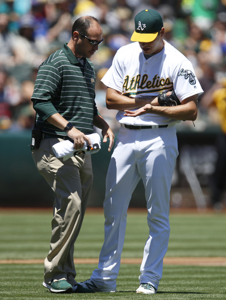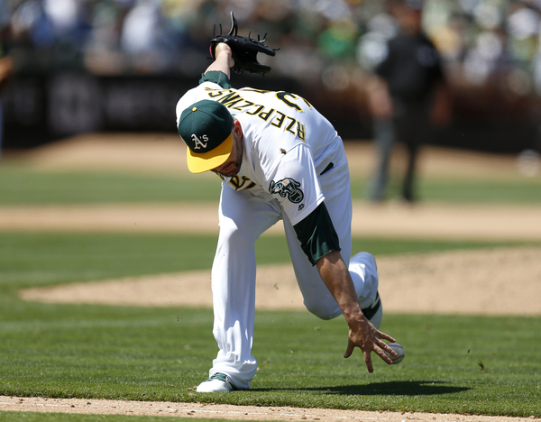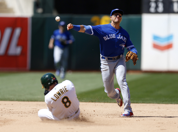 To that point, the Blue Jays seemed to have things pretty much their way. After the A's took a 2-0 lead in the first on RBI hit from Davis and a run-scoring grounder from Vogt, Toronto got one unearned run off A's rookie starter Daniel Mengden in the second, scored twice in the third on a Mengden wild pitch and an Edwin Encarnacion sacrifice fly, then struck for four more in the fourth, sending Mengden packing.
