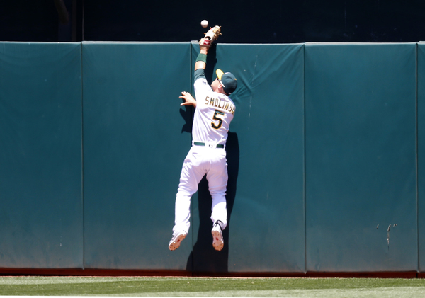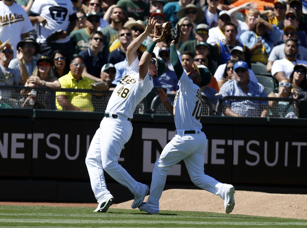 Down 7-3 in the fourth, the A's got one run back on a two-out single from Jake Smolinski, then came into some power against Toronto starter Marcus Stroman in the fifth. Reddick singled, Davis crushed a two-run homer, his 20th, and Vogt followed with his eighth homer to tie it. Those were the fourth back-to-back homers for Oakland this season.