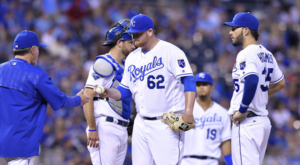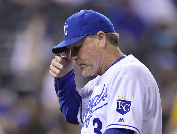 KANSAS CITY, Mo. _ When the parade of relievers was done, and the score was finally out of reach, Royals manager Ned Yost climbed the stairs of the first base dugout and trudged toward the mound once more. His pace was quick but deliberate. His eyes shifted down for a second and then back up. As he reached the mound, a scatter of boos echoed throughout Kauffman Stadium.