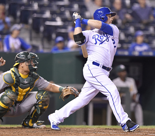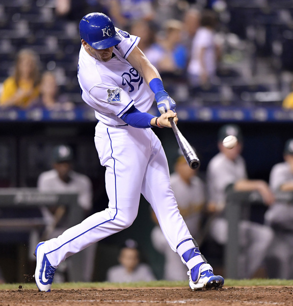 The blowout allowed rookie Hunter Dozier to make his major-league debut after a long wait. He took over right field in the seventh and struck out against Zach Neal in his first at-bat in the ninth.