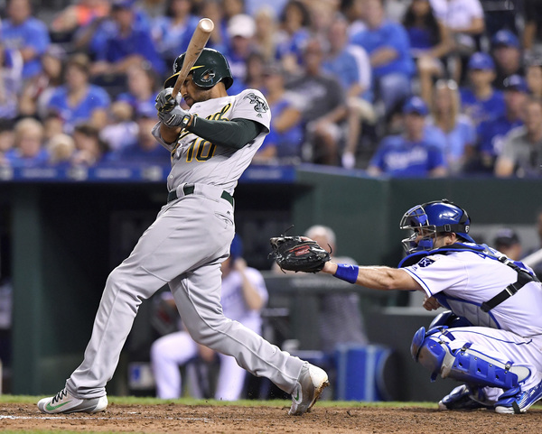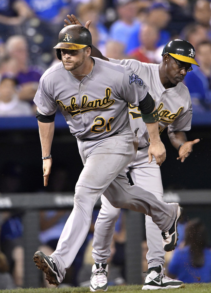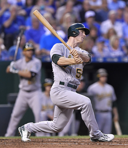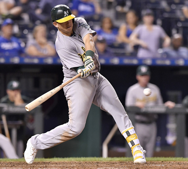 The last-place A's (61-82) had scored just 14 runs in their previous five games. On Monday, they pounded out 17 hits and eclipsed 14 with a four-run ninth inning against rookie Alec Mills, who was activated before the game.