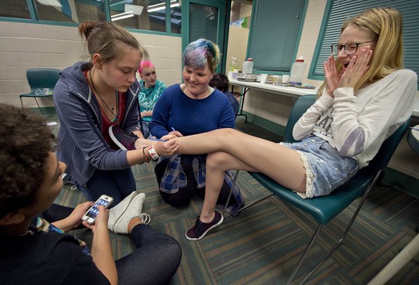 But then there's Soraya, a posh trans girl from Knob Noster who, judging from her conversation, has nagging boy problems. Life's a bit simpler for Alice O'Kelly, a cis-gender (traditional) girl from Liberty. She's pansexual, meaning she can be attracted to males, females and transgender individuals. "I'm more attracted to the person," she says.