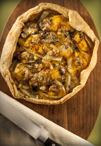 Pie and wine for dinner? Sounds like an indulgent night alone, remote in hand _ but make that a savory pie, and you've got yourself a dinner party. This simple galette (a rustic tart) is made with butternut squash, sage and blue cheese. The latter is traditionally tough to pair with wine, but sommelier Nate Redner of Lincoln Park's Oyster Bah suggests ripe, fruit-forward pours that will tame the cheese's sharpness.