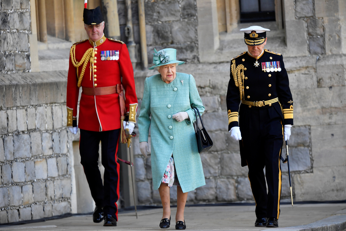 Britain's Queen Elizabeth attends a ceremony to mark her official birthday at Windsor Castle in Windsor, Britain, June 13, 2020. The Queen celebrates her 94th birthday this year. REUTERS/Toby Melville/Pool