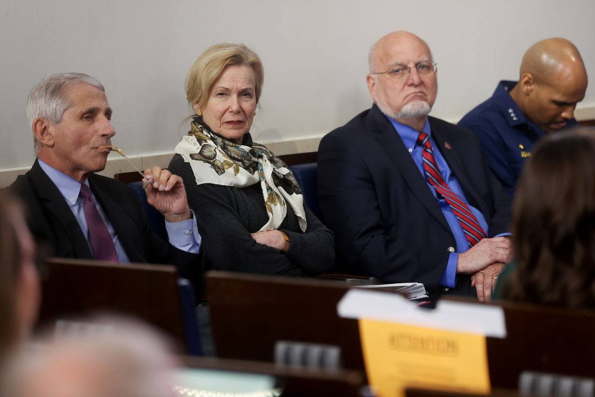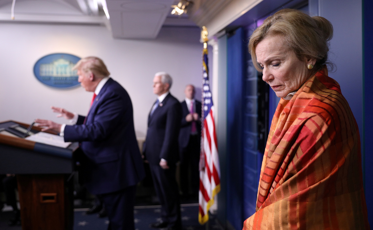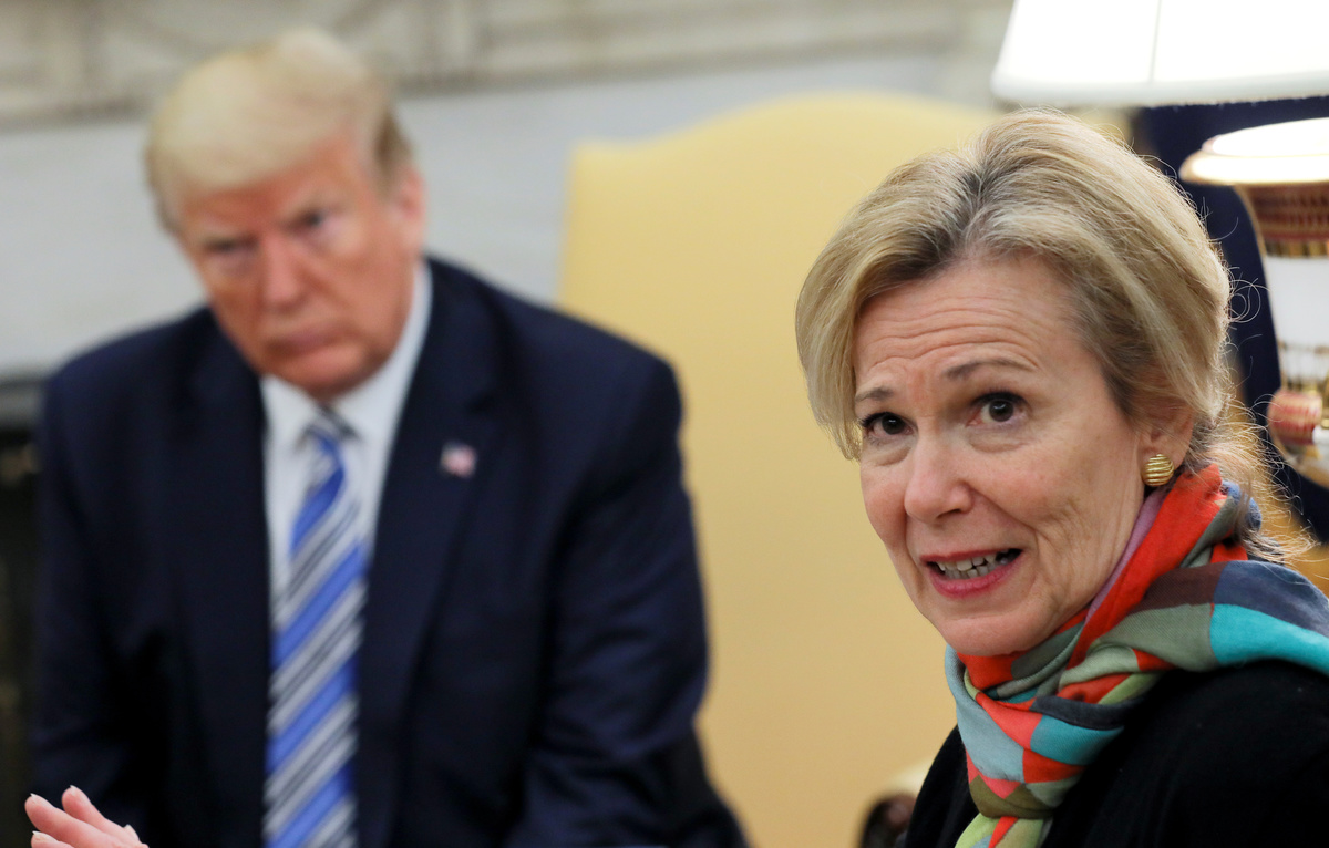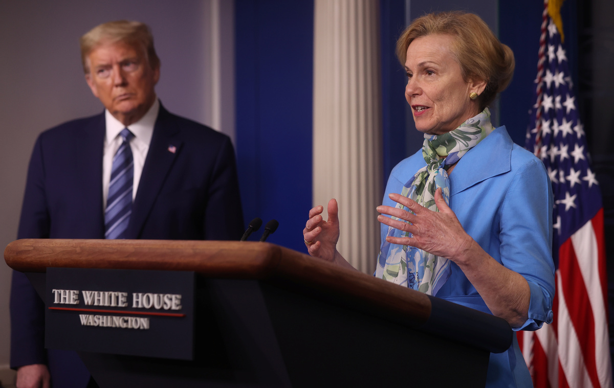 White House medical advisors, including Dr. Anthony Fauci of the National Institutes of Health, White House coronavirus coordinator Dr. Deborah Birx, Centers for Disease Control (CDC) Director Robert Redfield and U.S. Surgeon General Jerome Adams listen to the daily coronavirus task force briefing with President Donald Trump at the White House in Washington, U.S., April 22, 2020. REUTERS/Jonathan ErnstWhite House Coronavirus Response Coordinator Dr. Deborah Birx listens as U.S. President Donald Trump speaks during the daily coronavirus task force briefing in the Brady press briefing room at the White House in Washington, U.S., April 3, 2020. REUTERS/Tom Brenner White House coronavirus response coordinator Dr. Deborah Birx answers a question as she appears with President Trump at the daily coronavirus task force briefing at the White House in Washington, U.S., April 4, 2020. REUTERS/Joshua RobertsAmbassador Debbie Birx, the White House coronavirus response coordinator, addresses the coronavirus task force daily briefing at the White House in Washington, U.S., March 25, 2020. REUTERS/Jonathan ErnstWhite House Coronavirus response coordinator Dr. Deborah Birx speaks as NIH National Institute of Allergy and Infectious Diseases Director Dr. Anthony Fauci and U.S. ?Vice President Mike Pence? the daily listen during the daily coronavirus response briefing at the White House in Washington, U.S. March 27, 2020. REUTERS/Jonathan ErnstWhite House Coronavirus response coordinator Dr. Deborah Birx speaks during a news conference in the Rose Garden of the White House in Washington, U.S., March 29, 2020. REUTERS/Al Drago