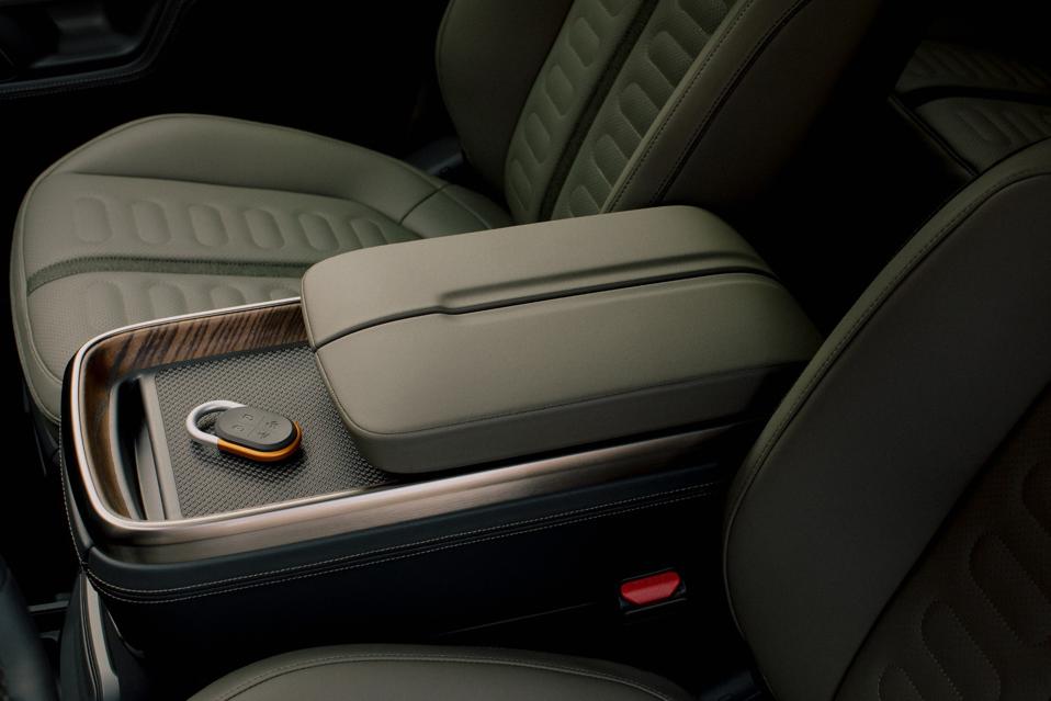The more frequently used controls like shifting, turn signals, and driver assistance activation are still done by steering column stalks and there is a proper circular steering wheel. One criticism of Tesla, particularly on the Model S and X is that despite their high prices, they have never really felt like luxury cars. The same cannot be said for the R1T. At the $73,000 price of the R1T launch edition, it feels decidedly premium inside. The fit and finish of the early production truck I drove was very good and the mix of vegan leather, real wood veneers and aluminum looked like what you should expect at the price point.