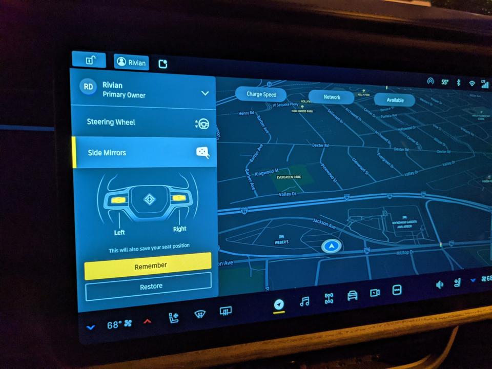 The infotainment is controlled through a 16-inch center touchscreen which features an internally developed interface. It was generally responsive although on a couple of occasions it did lag a bit although not as much as the VW ID.4 system. The graphics are clear and easily readable. Given the very large investment made by Amazon in Rivian, it should come as no surprise that the voice recognition is powered by Alexa voice services. Unfortunately, Rivian has opted not to include support for Android Auto or Apple