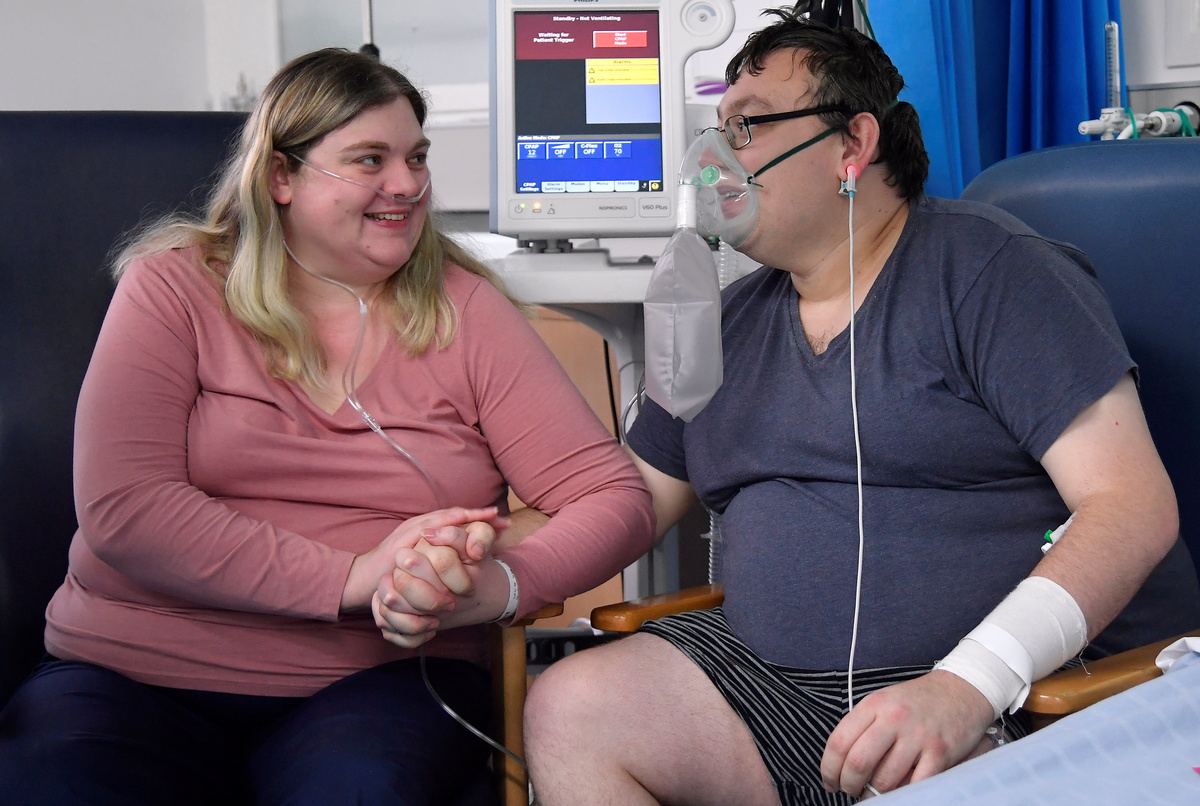 When Kerr, 31, and O'Brien, 36, arrived at the hospital in southern England, both needed a CPAP machine to breathe. They were placed on separate wards for COVID-19 patients.