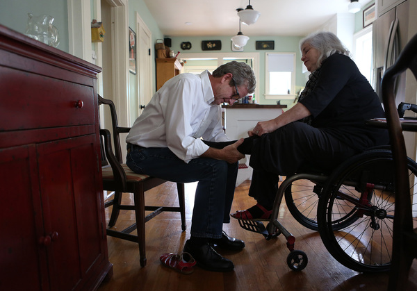 By early December, she returned home. May had watched a YouTube video on how to build a wheelchair ramp, and in two hours, a sheet of plywood, reinforced by 2-by-4s, covered the two 15-inch steps from the backyard into the kitchen.