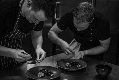 Croft and Murray met at the Michelin-starred Dinner by Heston – where the menu is based on historical British dishes – and they quickly developed a friendship. They speak with great energy and enthusiasm, as if they feel like they can achieve anything they put their minds to. Each chef takes over from the other to add, to change, to develop what the other has said, much like the way they create new dishes.