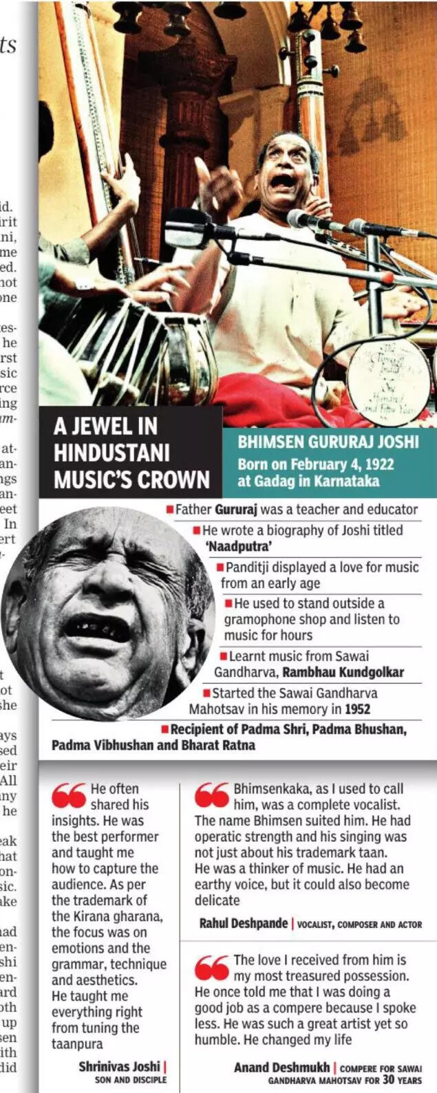 Swarabhaskar (Panditji) is no more, but his voice will always be with us. Bhimsenji completed a memorable journey taking the Kirana gharana to new heights. All of us who have been a part of his journey are indeed the blessed ones.