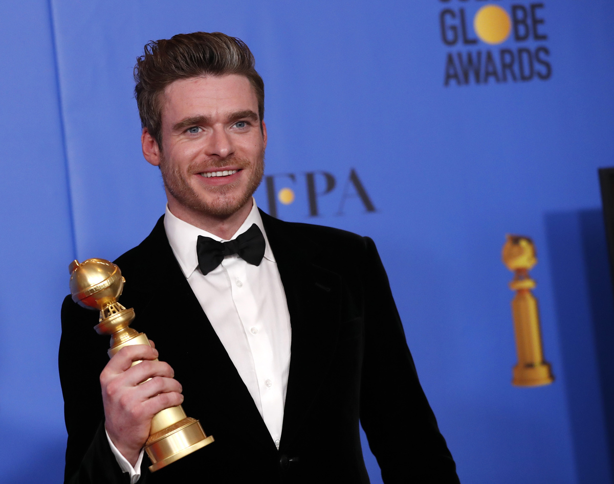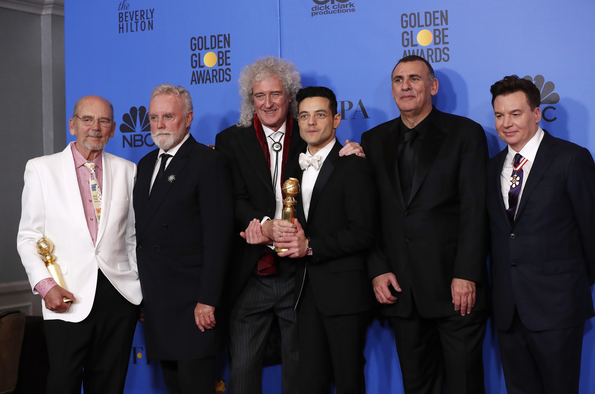 76th Golden Globe Awards - Photo Room - Beverly Hills, California, U.S., January 6, 2019 (L-R) Jim Beach, Roger Taylor, Brian May, Rami Malek with his Best Performance by an Actor in a Motion Picture - Drama, Graham King and Mike Meyers pose backstage with their Best Motion Picture - Drama for "Bohemian Rhapsody" REUTERS/Mario Anzuoni76th Golden Globe Awards - Photo Room - Beverly Hills, California, U.S., January 6, 2019 - Rami Malek (C) poses backstage with his award for Best Performance by an Actor in a Motion Picture Drama for "Bohemian Rhapsody" along with Brian May (L) and Roger Taylor. REUTERS/Mario Anzuoni76th Golden Globe Awards - Photo Room - Beverly Hills, California, U.S., January 6, 2019 Alfonso Cuaron poses backstage with his Best Director - Motion Picture and Best Motion Picture - Foreign Language for "Roma" REUTERS/Mario Anzuoni76th Golden Globe Awards - Photo Room - Beverly Hills, California, U.S., January 6, 2019 Lady Gaga poses backstage with her Best Original Song - Motion Picture award for "Shallow"? from "A Star is Born" REUTERS/Mario Anzuoni76th Golden Globe Awards - Photo Room - Beverly Hills, California, U.S., January 6, 2019 Jim Beach, Roger Taylor, Brian May and Graham King pose backstage with their Best Motion Picture - Drama award for "Bohemian Rhapsody" REUTERS/Mario Anzuoni76th Golden Globe Awards - Photo Room - Beverly Hills, California, U.S., January 6, 2019 - Rami Malek (C) poses backstage with his award for Best Performance by an Actor in a Motion Picture Drama for "Bohemian Rhapsody" along with Brian May (L) and Roger Taylor. REUTERS/Mario Anzuoni76th Golden Globe Awards - Show - Beverly Hills, California, U.S., January 6, 2019 - Glenn Close, winner of Best Actress - Motion Picture, Drama, accepts her award from presenter Gary Oldman. Paul Drinkwater/NBC Universal/Handout via REUTERS 76th Golden Globe Awards - Photo Room - Beverly Hills, California, U.S., January 6, 2019 - Olivia Colman poses backstage with her award for Best Performance by an Actress in a Motion Picture, Musical or Comedy for "The Favourite." REUTERS/Mario Anzuoni76th Golden Globe Awards – Show – Beverly Hills, California, U.S., January 6, 2019 - Christian Bale, Best Actor - Motion Picture, Musical or Comedy, "Vice," accepts his award. Paul Drinkwater/NBC Universal/Handout via REUTERS 76th Golden Globes – Arrivals – Beverly Hills, California, U.S., January 6, 2019 Alfonso Cuaron and Tess Bu Cuaron. REUTERS/Mario Anzuoni76th Golden Globe Awards – Show – Beverly Hills, California, U.S., January 6, 2019 - Michael Douglas, winner of Best Actor - TV Series, Musical or Comedy, accepts his award. Paul Drinkwater/NBC Universal/Handout via REUTERS 76th Golden Globe Awards - Show - Beverly Hills, California, U.S., January 6, 2019 - Glenn Close, winner of Best Actress - Motion Picture, Drama, accepts her award. Paul Drinkwater/NBC Universal/Handout via REUTERS 76th Golden Globe Awards - Photo Room - Beverly Hills, California, U.S., January 6, 2019 - Mahershala Ali poses backstage with his award for Best Performance by an Actor in a Supporting Role in Any Motion Picture for "Green Book." REUTERS/Mario Anzuoni76th Golden Globe Awards – Show – Beverly Hills, California, U.S., January 6, 2019 - Lady Gaga and Mark Ronson, winners of Best Original Song - Motion Picture, accept the award. Paul Drinkwater/NBC Universal/Handout via REUTERS76th Golden Globe Awards - Photo Room - Beverly Hills, California, U.S., January 6, 2019 - Richard Madden poses backstage with his Best Performance by an Actor in a Television Series Drama award for "Bodyguard." REUTERS/Mario Anzuoni76th Golden Globe Awards - Arrivals - Beverly Hills, California, U.S., January 6, 2019 - Lady Gaga. REUTERS/Mike Blake76th Golden Globe Awards – Show – Beverly Hills, California, U.S., January 6, 2019 - Sandra Oh and Andy Samberg host. Paul Drinkwater/NBC Universal/Handout via REUTERS 76th Golden Globe Awards - Arrivals - Beverly Hills, California, U.S., January 6, 2019 - Sandra Oh and Andy Samberg. REUTERS/Mike Blake76th Golden Globe Awards - Arrivals - Beverly Hills, California, U.S., January 6, 2019 - Terry Crews and Rebecca King-Crews. REUTERS/Mike Blake