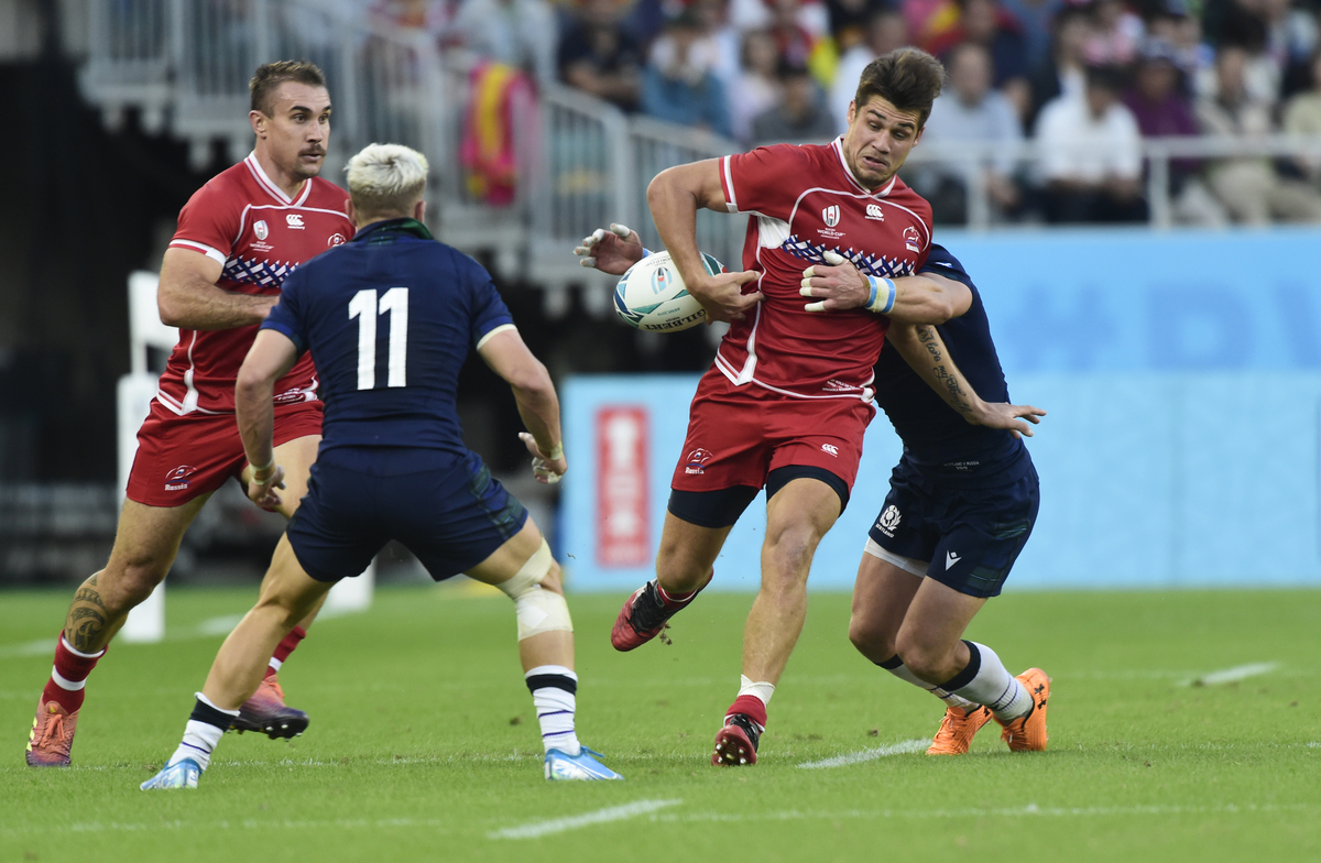 Rugby Union - Rugby World Cup 2019 - Pool A - Scotland v Russia - Shizuoka Stadium Ecopa, Shizuoka, Japan - October 9, 2019 Russia's Vasily Artemyev in action REUTERS/Rebecca Naden
