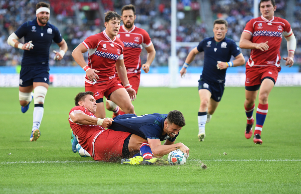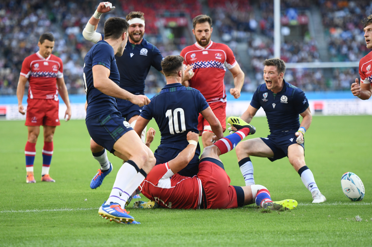 Rugby Union - Rugby World Cup 2019 - Pool A - Scotland v Russia - Shizuoka Stadium Ecopa, Shizuoka, Japan - October 9, 2019 Scotland's Adam Hastings celebrates with team mates scoring their first try REUTERS/Annegret HilseRugby Union - Rugby World Cup 2019 - Pool A - Scotland v Russia - Shizuoka Stadium Ecopa, Shizuoka, Japan - October 9, 2019 Scotland's Ryan Wilson during a scrum REUTERS/Rebecca NadenRugby Union - Rugby World Cup 2019 - Pool A - Scotland v Russia - Shizuoka Stadium Ecopa, Shizuoka, Japan - October 9, 2019 Scotland's Adam Hastings scores their first try REUTERS/Annegret HilseRugby Union - Rugby World Cup 2019 - Pool A - Scotland v Russia - Shizuoka Stadium Ecopa, Shizuoka, Japan - October 9, 2019 Scotland's Scott Cummings in action with Russia's Ramil Gaisin REUTERS/Rebecca NadenRugby Union - Rugby World Cup 2019 - Pool A - Scotland v Russia - Shizuoka Stadium Ecopa, Shizuoka, Japan - October 9, 2019 Scotland's Adam Hastings converts a try REUTERS/Rebecca NadenRugby Union - Rugby World Cup 2019 - Pool A - Scotland v Russia - Shizuoka Stadium Ecopa, Shizuoka, Japan - October 9, 2019 Russia's Vladimir Ostroushko in action REUTERS/Annegret HilseRugby Union - Rugby World Cup 2019 - Pool A - Scotland v Russia - Shizuoka Stadium Ecopa, Shizuoka, Japan - October 9, 2019 Russia players look dejected after the match REUTERS/Rebecca NadenRugby Union - Rugby World Cup 2019 - Pool A - Scotland v Russia - Shizuoka Stadium Ecopa, Shizuoka, Japan - October 9, 2019 Scotland players bow to their fans after the match REUTERS/Annegret HilseRugby Union - Rugby World Cup 2019 - Pool A - Scotland v Russia - Shizuoka Stadium Ecopa, Shizuoka, Japan - October 9, 2019 Scotland's George Horne scores their fourth try REUTERS/Annegret HilseRugby Union - Rugby World Cup 2019 - Pool A - Scotland v Russia - Shizuoka Stadium Ecopa, Shizuoka, Japan - October 9, 2019 Russia's Ramil Gaisin and Vladimir Ostroushko during the match REUTERS/Annegret HilseRugby Union - Rugby World Cup 2019 - Pool A - Scotland v Russia - Shizuoka Stadium Ecopa, Shizuoka, Japan - October 9, 2019 Scotland's George Horne scores their fourth try REUTERS/Annegret HilseRugby Union - Rugby World Cup 2019 - Pool A - Scotland v Russia - Shizuoka Stadium Ecopa, Shizuoka, Japan - October 9, 2019 Fans during the match REUTERS/Rebecca Naden