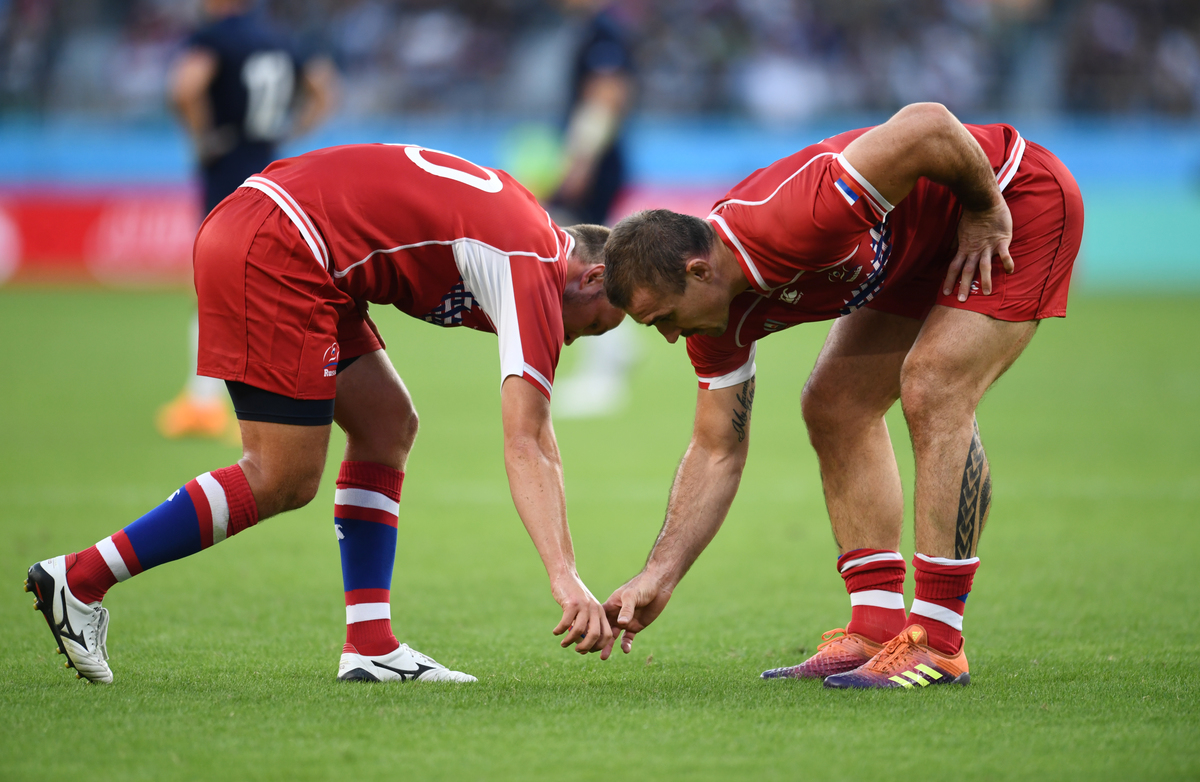 The fatigue was most evident in the second half when captain Vasily Artemyev put up a clearing kick that barely travelled 30 metres and only a few players trudged forward to stop the counter attack, which ended with another Scotland try.