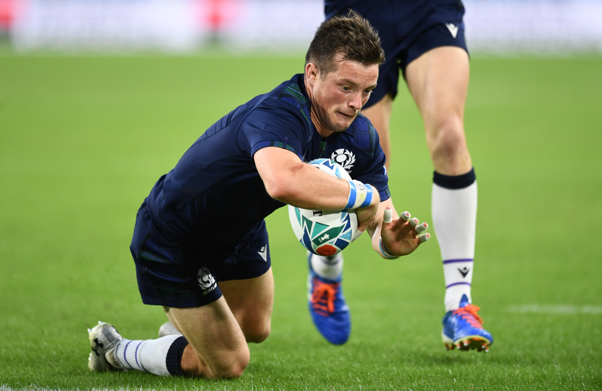 Rugby Union - Rugby World Cup 2019 - Pool A - Scotland v Russia - Shizuoka Stadium Ecopa, Shizuoka, Japan - October 9, 2019 Scotland's Adam Hastings scores their first try REUTERS/Annegret Hilse
