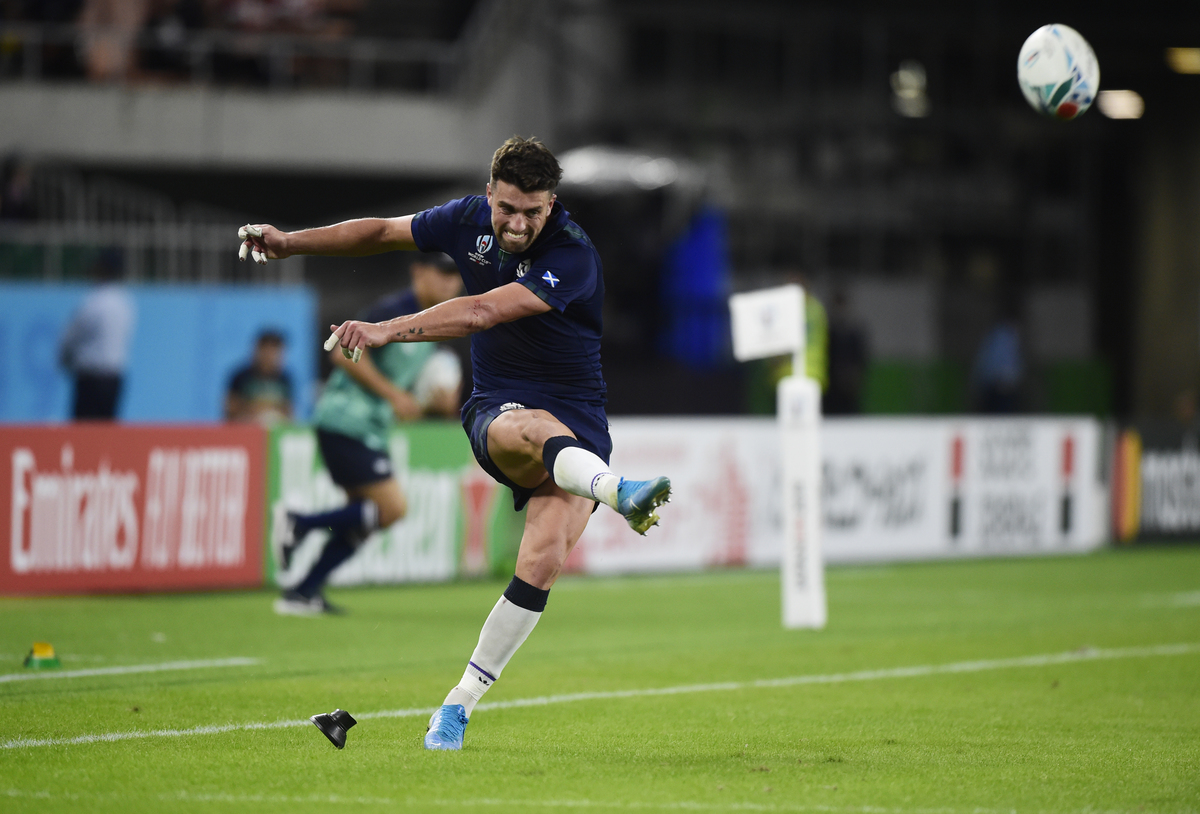 Rugby Union - Rugby World Cup 2019 - Pool A - Scotland v Russia - Shizuoka Stadium Ecopa, Shizuoka, Japan - October 9, 2019 Scotland's Adam Hastings converts a try REUTERS/Annegret Hilse