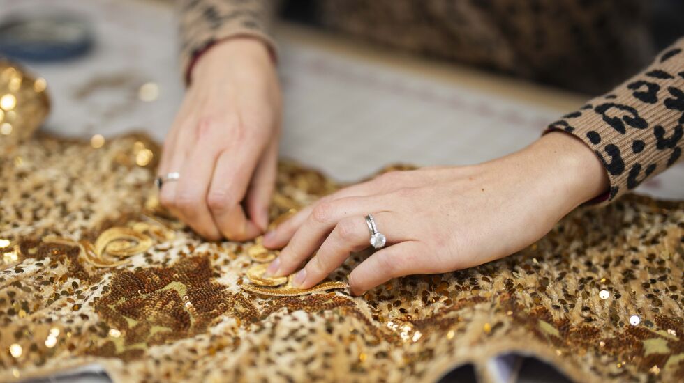 If it’s a chaotic time, it’s a controlled chaos. Three stitchers sit near a large window, working mostly in silence as they apply finishing touches to various costumes. Cotey’s team of six, including herself, has a combined 120 years of experience in the trade.