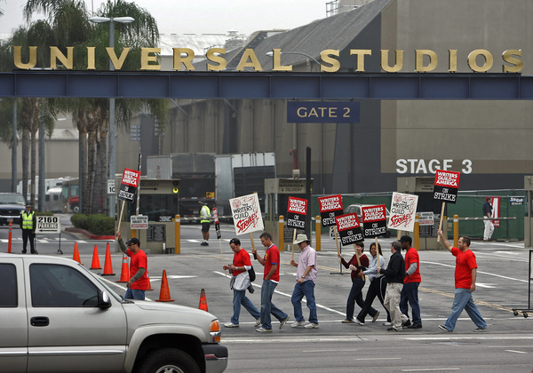 On the film side, the studios are making fewer movies per year, which means fewer opportunities for writers. And as the DVD market continues to decline, writers are seeing fewer home-video residuals.