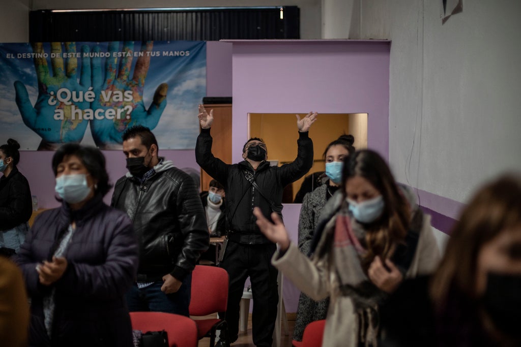 In Lescano’s services, there's a moving moment when she asks for help in paying the rent for the premises, along with other expenses, and the faithful, one by one, put an envelope in a cloth bag.