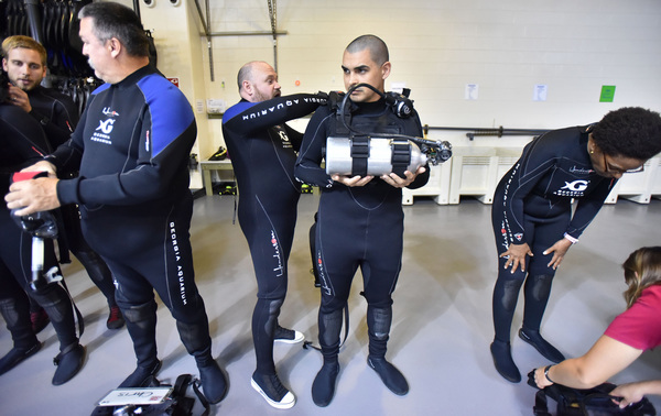 The biggest rush for some of these swimmers was floating alongside the 10-ton whale sharks. "I'm 6 foot, 230 pounds. I'm a big guy," said veteran David Singleton, standing at the edge of the pool as the silent giants glided past. "But maybe I'm not so big. If you don't believe in God, go down there. It will change your perspective."
