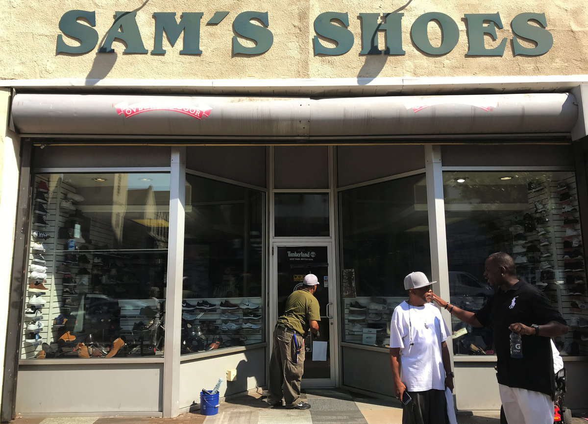 Sam's Shoes, which opened in the 1960s and is the oldest business in the neighborhood, sits alongside a dollar store and across from trendy retailers Bonobos and Warby Parker. Sam Arabia, 58, who inherited the store from his father, points to the new apartment building across the street.
