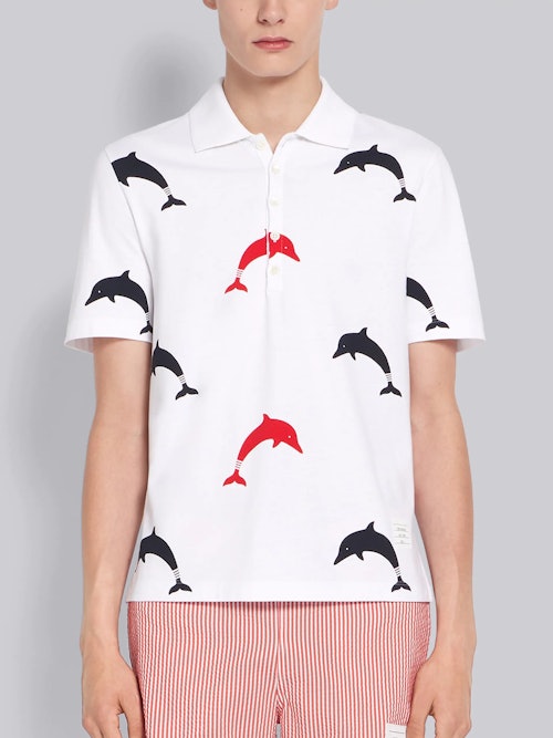 Thom Browne Jersey Allover Dolphin Print Polo ($390)
