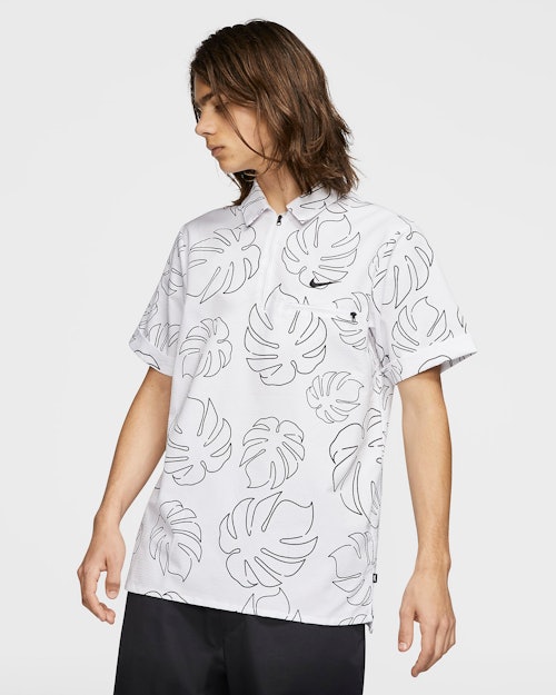 Nike's skateboarding subline made the shirt for preps work for the polar opposite crowd by replacing the buttons with a zipper and adding this tropical print fit for a camp collar shirt. It's also made of Nike's Dri-FIT material to help wick away any sweat you may produce.