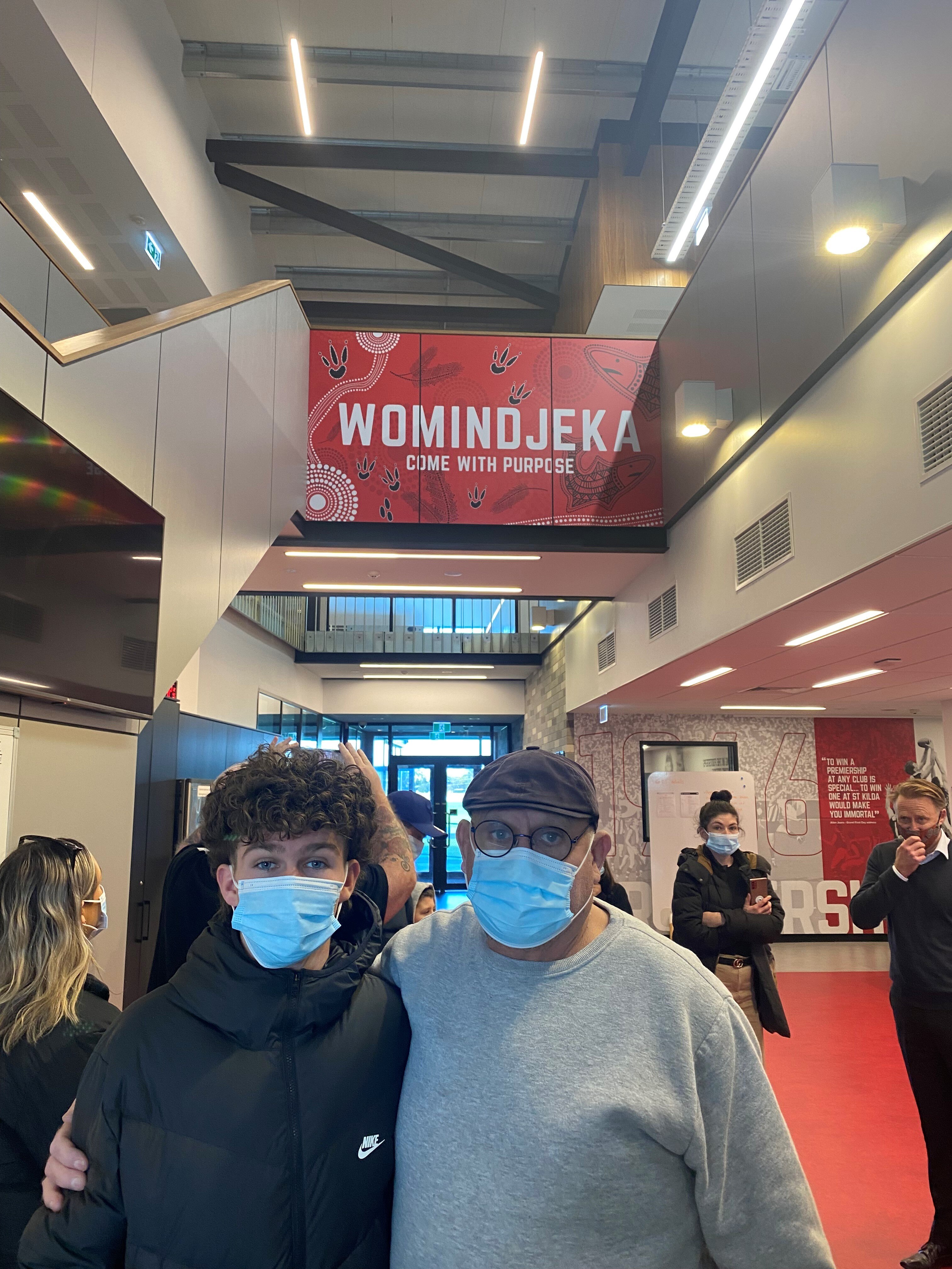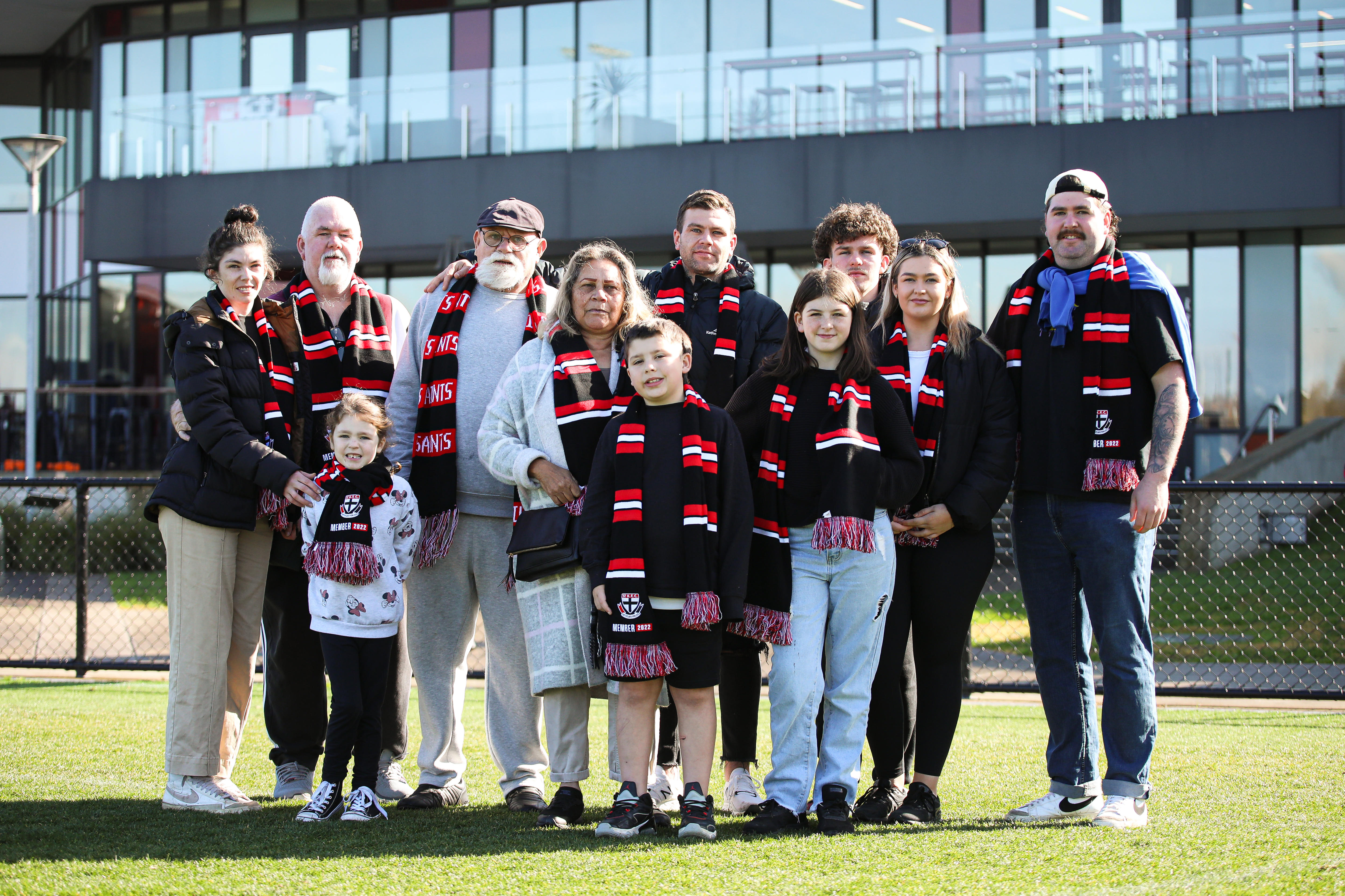 Saints CEO Matt Finnis and the club's Indigenous development manager Aunty Katrina Amon showed the way, guiding Muir and a strong contingent of his grandchildren and great-grandchildren around the rebuilt Moorabbin.