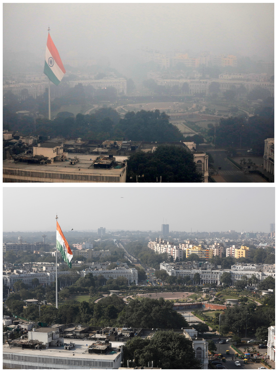 The photographs, taken with a fixed camera, are matched with air quality data to illustrate the scale of the problem. Another series of photographs shows air quality at 11 a.m. each day from Oct 20 to Nov 8.