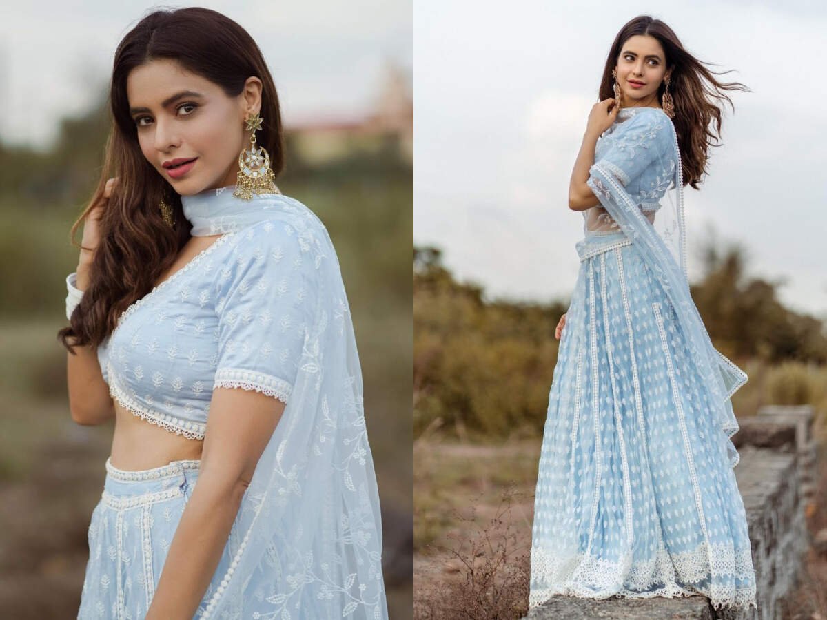 The pretty actress flaunted a powder blue lehenga recently and we are in love with its sheer beauty and simplicity.