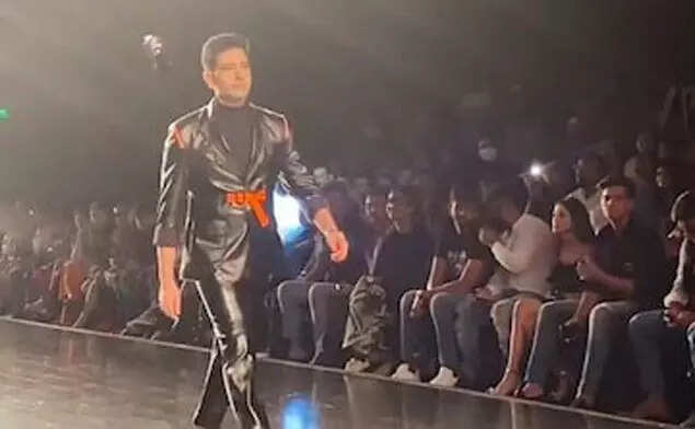 Chadha was seen walking the ramp on Sunday in a black leather outfit.