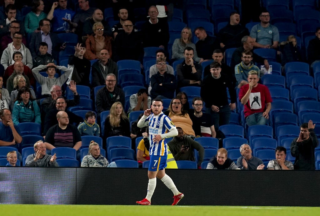 Just before the final whistle, Brighton almost added a third when Pascal Gross’ free-kick from just outside the area hit the bar.