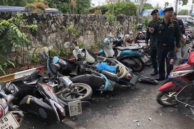 At about noon on Sunday staff of the train station informed local police of the three motorcycles, one of which had been parked there for a week, since July 28. The red Honda Wave, blue Yamaha Mio and black-gold Yamaha Fino motorcycles bore licence plates of Narathiwat, Pattani and Surat Thani provinces.