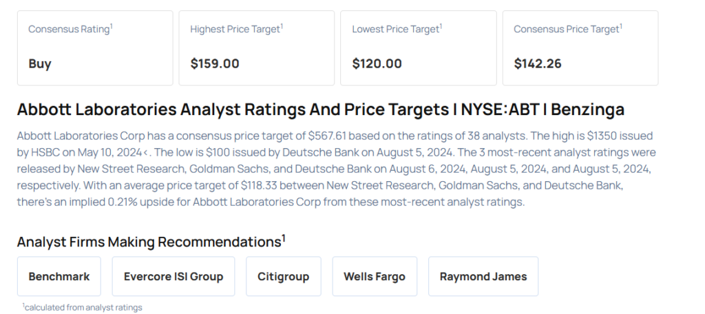 Analysts expect the North Chicago, Illinois-based company to report quarterly earnings at $1.30 per share, up from $1.21 per share in the year-ago period. Abbott Laboratories projects quarterly revenue of $11.4 billion, compared to $10.63 billion a year earlier, according to data from Benzinga Pro.