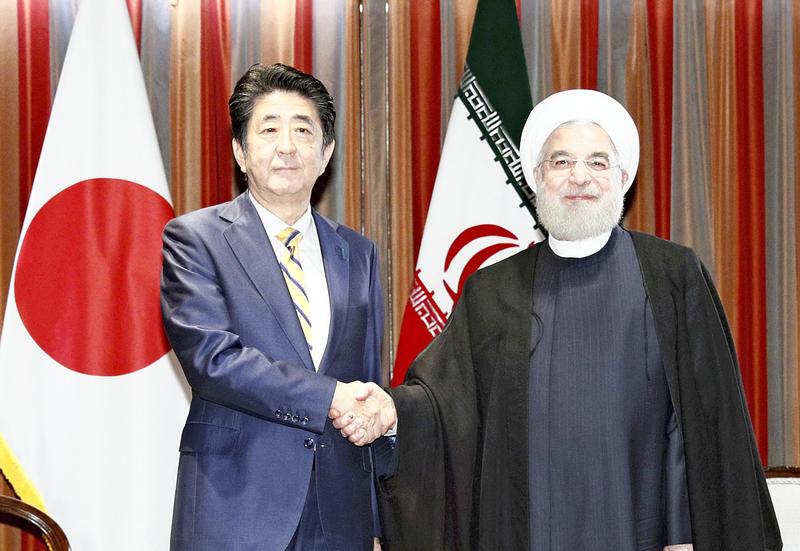 NEW YORK -- Prime Minister Shinzo Abe met with Iranian President Hassan Rouhani in New York on Tuesday and asked him to ensure the safety of navigation in the Strait of Hormuz amid rising tensions in the Middle East.