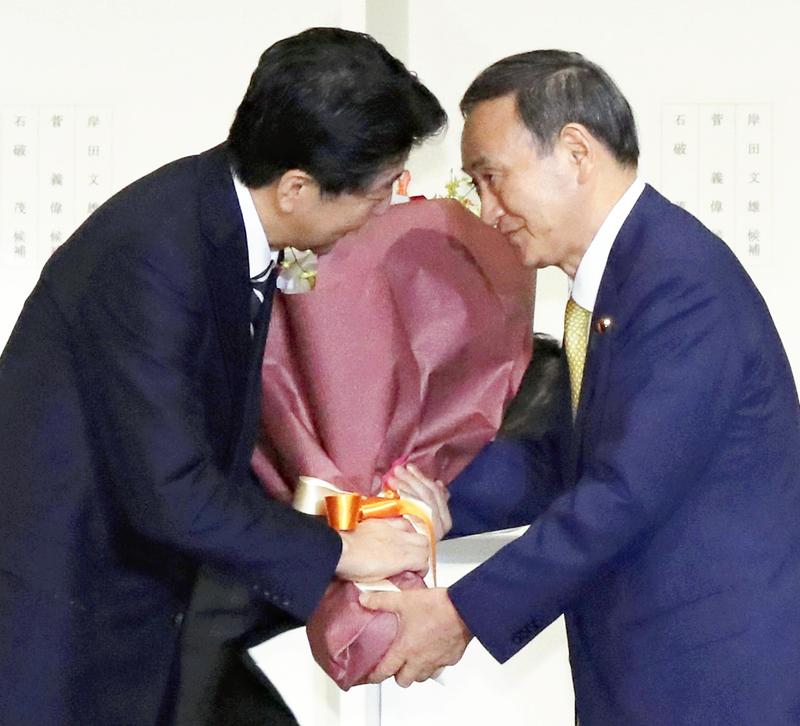 Prime Minister Shinzo Abe effectively named Chief Cabinet Secretary Yoshihide Suga as his successor and guided him to victory in the campaign for president of the Liberal Democratic Party.