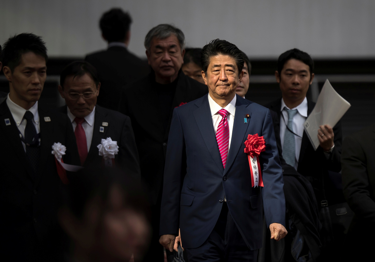 Japan's Prime Minister Shinzo Abe attends the construction completion ceremony of the New National Stadium on December 15, 2019 in Tokyo, Japan. Tomohiro Ohsumi/Pool via REUTERS