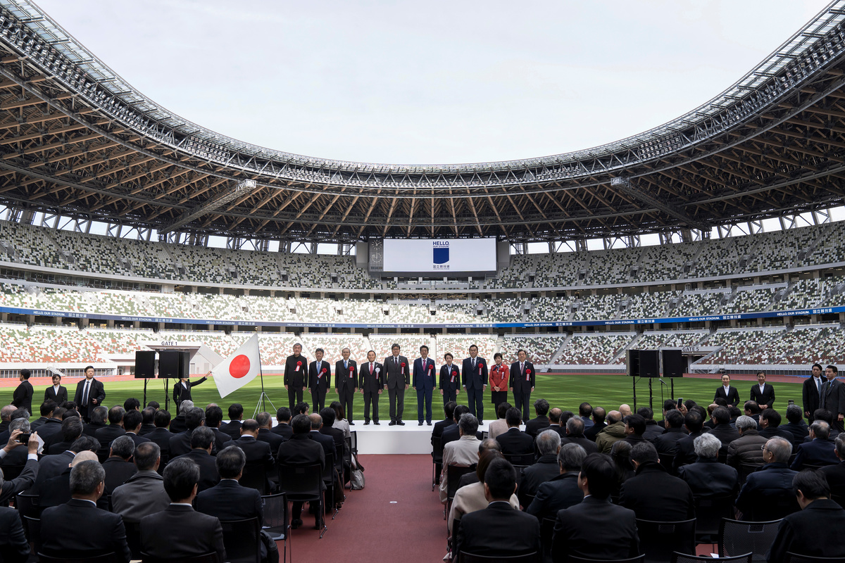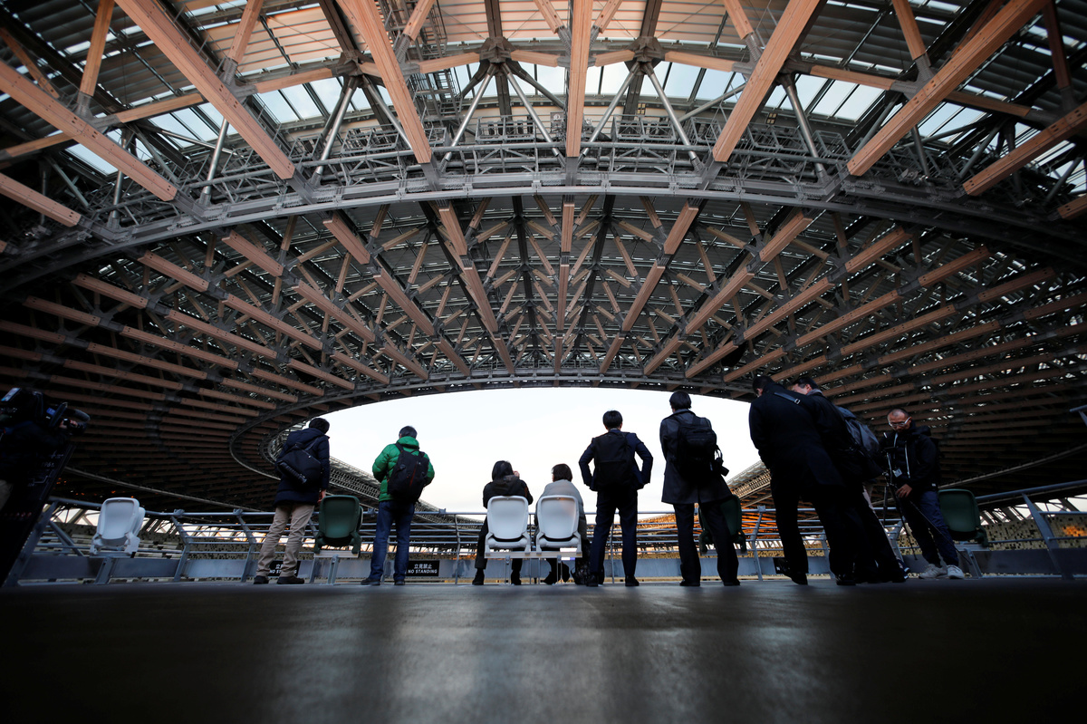 Spectators gate units are seen at the New National Stadium, the main stadium of Tokyo 2020 Olympics and Paralympics, after the construction completion ceremony in Tokyo, Japan December 15, 2019. REUTERS/Issei KatoGeneral view of the New National Stadium, the main stadium of Tokyo 2020 Olympics and Paralympics, after the construction completion ceremony in Tokyo, Japan December 15, 2019. REUTERS/Issei KatoGeneral view of the New National Stadium, the main stadium of Tokyo 2020 Olympics and Paralympics, after the construction completion ceremony in Tokyo, Japan December 15, 2019. REUTERS/Issei KatoPeople pose during a group photograph during the construction completion ceremony of the New National Stadium on December 15, 2019 in Tokyo, Japan. Seen here are (L-R) Architect Kengo Kuma, Azusa Sekkei Co. President Fumihiko Sugitani, Taisei Corp. Chairman Takashi Yamauchi, Japan Sport Council President Kazumi Ohigashi, Minister of Education, Culture, Sports and Science Koichi Hagiuda, Japan's Prime Minister Shinzo Abe, Minister for the Tokyo Olympic and Paralympic Games Seiko Hashimoto, Minister of Land, Infrastructure, Transport and Tourism Kazuyoshi Akaba, Tokyo Governor Yuriko Koike, and Tokyo Organizing Committee of the Olympic and Paralympic Games Vice President Toshiaki Endo. Tomohiro Ohsumi/Pool via REUTERSJapan's Prime Minister Shinzo Abe arrives for the construction completion ceremony of the New National Stadium on December 15, 2019 in Tokyo, Japan. Tomohiro Ohsumi/Pool via REUTERSPeople pose during a group photograph during the construction completion ceremony of the New National Stadium on December 15, 2019 in Tokyo, Japan. Seen here are (L-R) Architect Kengo Kuma, Azusa Sekkei Co. President Fumihiko Sugitani, Taisei Corp. Chairman Takashi Yamauchi, Japan Sport Council President Kazumi Ohigashi, Minister of Education, Culture, Sports and Science Koichi Hagiuda, Japan's Prime Minister Shinzo Abe, Minister for the Tokyo Olympic and Paralympic Games Seiko Hashimoto, Minister of Land, Infrastructure, Transport and Tourism Kazuyoshi Akaba, Tokyo Governor Yuriko Koike, and Tokyo Organizing Committee of the Olympic and Paralympic Games Vice President Toshiaki Endo. Tomohiro Ohsumi/Pool via REUTERSArchitect Kengo Kuma, Azusa Sekkei Co. President Fumihiko Sugitani, Taisei Corp. Chairman Takashi Yamauchi, Japan Sport Council President Kazumi Ohigashi, and Japan's Minister of Education, Culture, Sports and Science Koichi Hagiuda pose for a group photograph during the construction completion ceremony of the New National Stadium on December 15, 2019 in Tokyo, Japan. Tomohiro Ohsumi/Pool via REUTERS