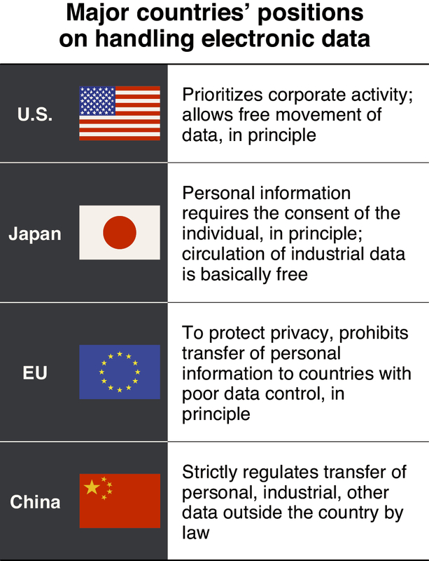 However, even if Abe succeeds in launching the negotiations, China and other countries will likely insist on maintaining their own rules on data movement, which might make reaching an agreement difficult.