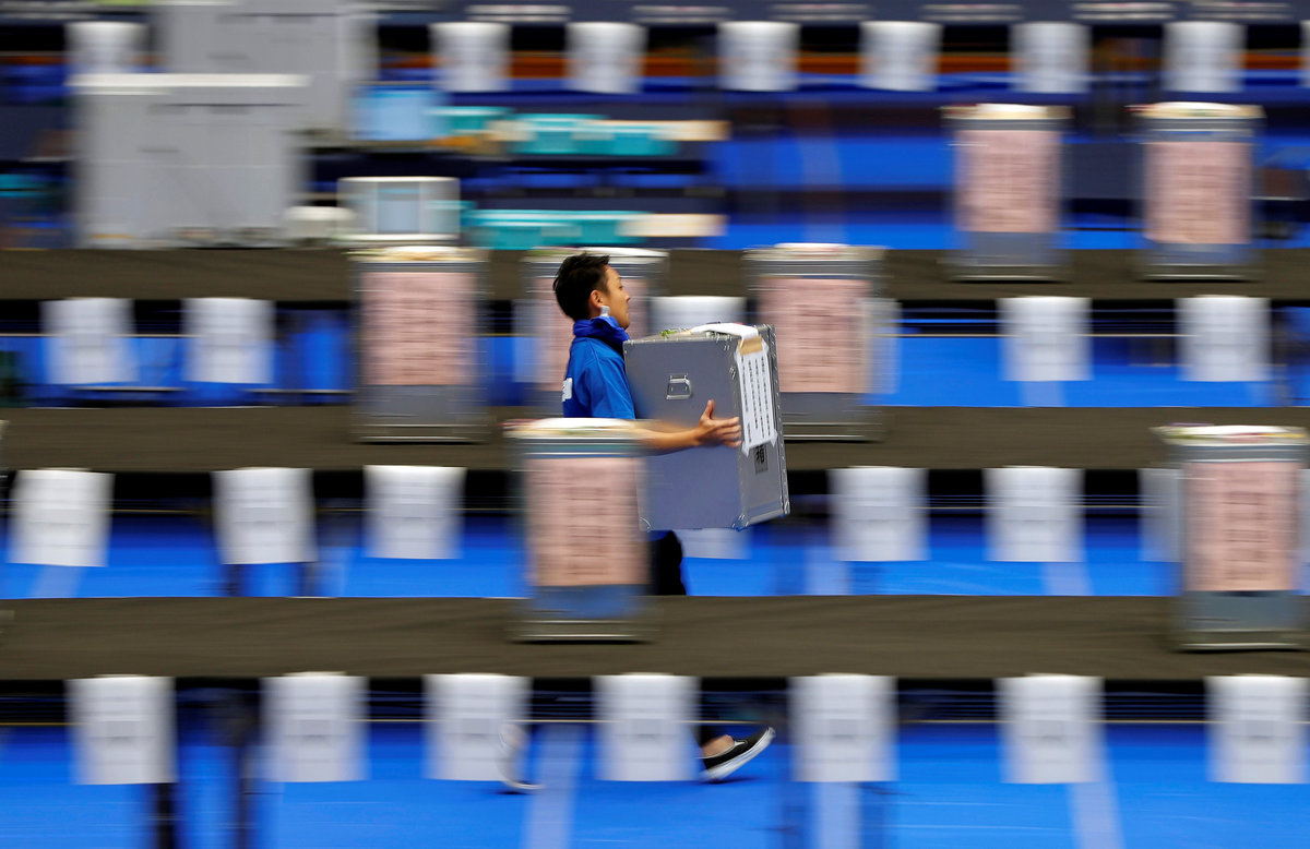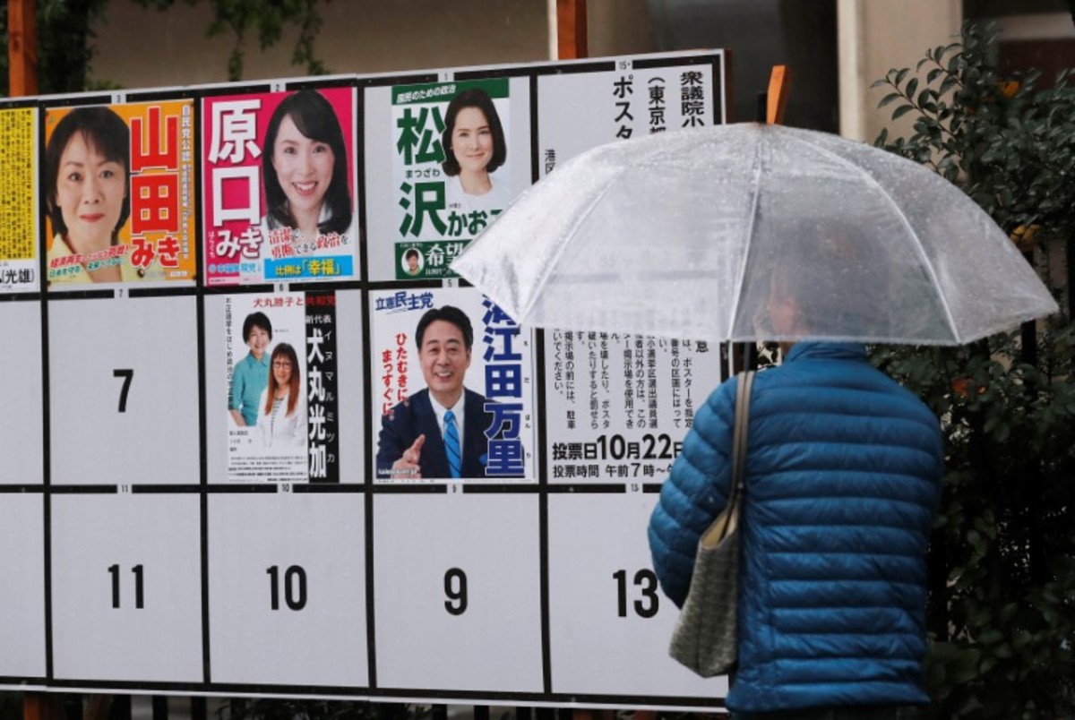 Kyodo news agency estimated turnout on Sunday - when heavy rain from powerful Typhoon Lan lashed much of Japan - at 53.7 percent, 1 point above the record low in the last lower house election in 2014.
