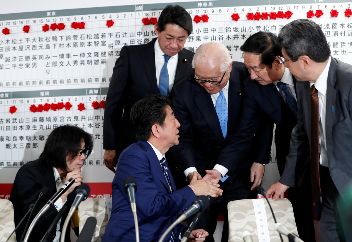 TOKYO (Reuters) - Japanese Prime Minister Shinzo Abe's ruling bloc scored a big win in Sunday's election, bolstering his chance of becoming the nation's longest-serving premier and re-energising his push to revise the pacifist constitution.