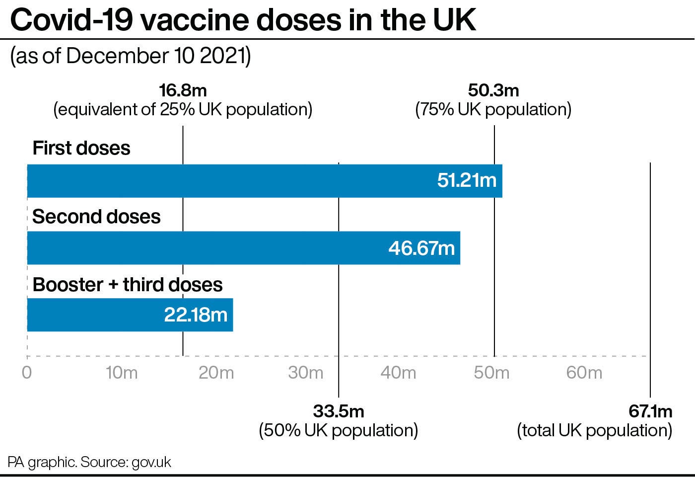 So based on the most recent figures, which show that 19.4 million boosters had been given up to December 11, this leaves an estimated 17.4 million people who have had two doses and are now eligible for a third.
