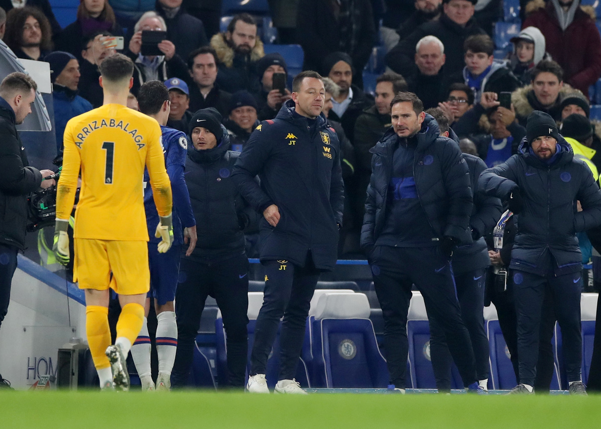 Former Chelsea captain John Terry, now Villa's assistant head coach, stepped on to the pitch after the match to applause from the home fans. The former England captain played 717 times for Chelsea.
