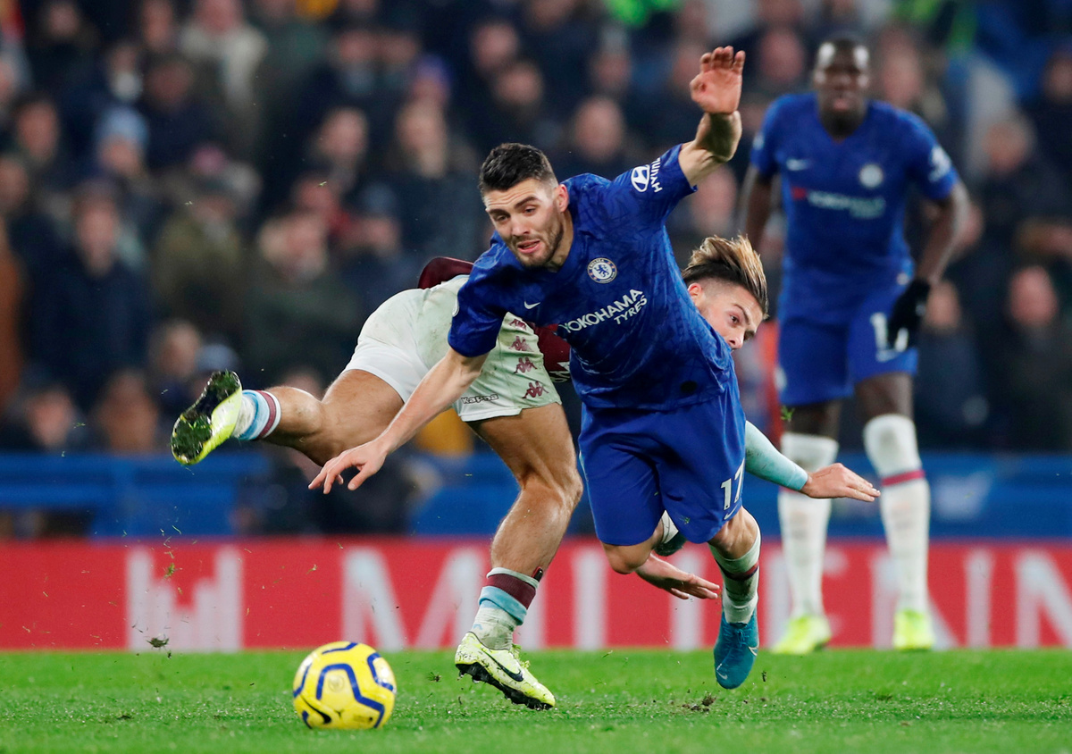 Soccer Football - Premier League - Chelsea v Aston Villa - Stamford Bridge, London, Britain - December 4, 2019 Chelsea's Mateo Kovacic in action with Aston Villa's Jack Grealish Action Images via Reuters/Paul Childs