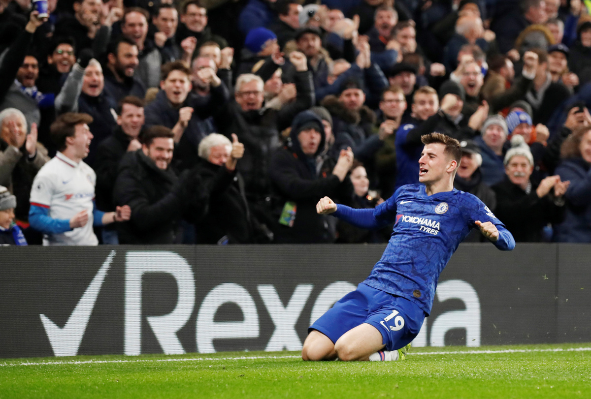 Soccer Football - Premier League - Chelsea v Aston Villa - Stamford Bridge, London, Britain - December 4, 2019 Chelsea's Mason Mount celebrates scoring their second goal REUTERS/David Klein