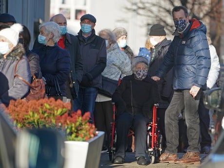Dozens of people aged over 80 – many with walking frames, some with oxygen tanks – have had to queue outside for more than an hour to get their coronavirus vaccine.
