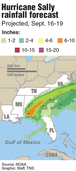 A last-minute eastern wobble brought the Category 2 winds of Hurricane Sally _ and two feet of rain _ to the Florida Panhandle overnight.