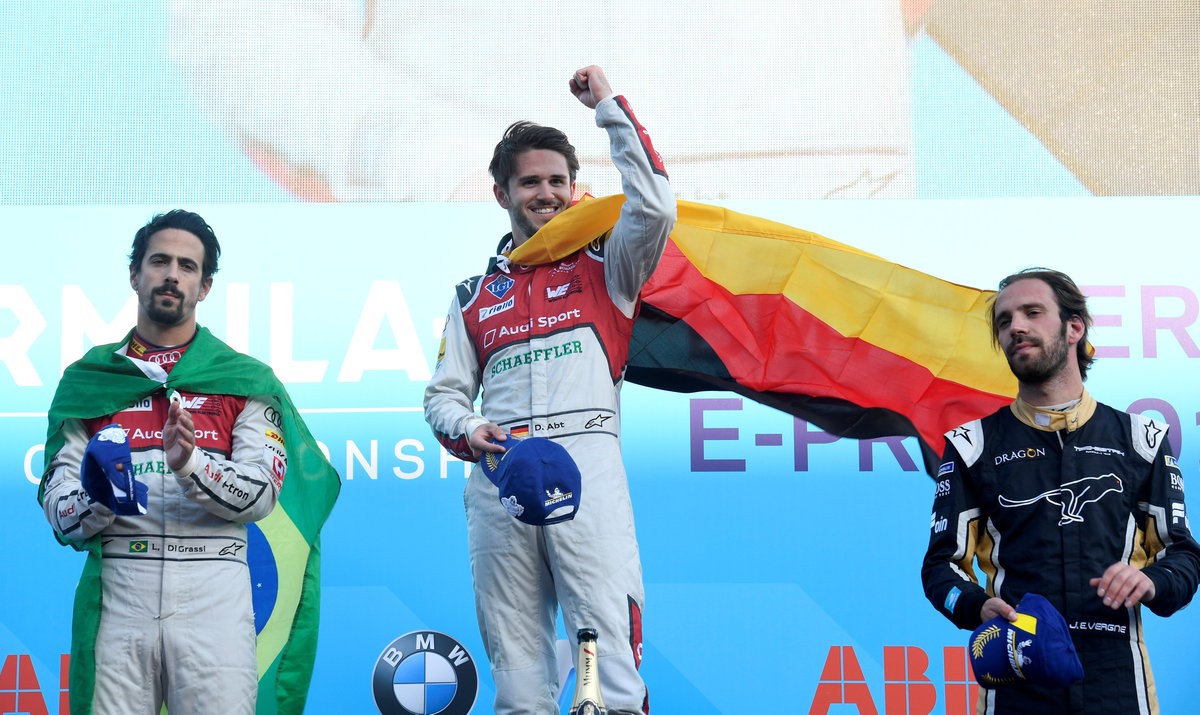 Abt, who started on pole position and set the fastest lap, beat Brazilian team mate and reigning champion Lucas di Grassi across the line by 6.758 seconds for his second victory in the all-electric series.