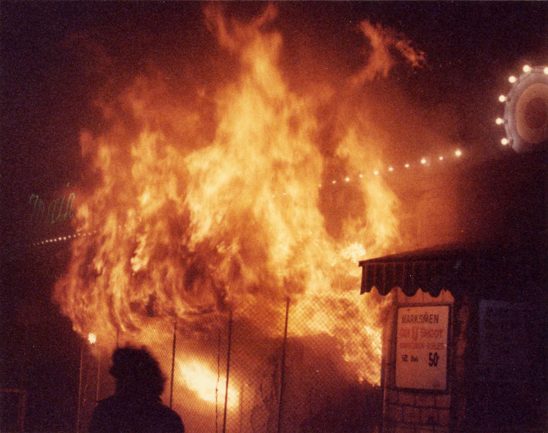 Smoke rose high above the harbour when an inferno erupted at Sydney's "Just for Fun" theme park on June 9, 1979.